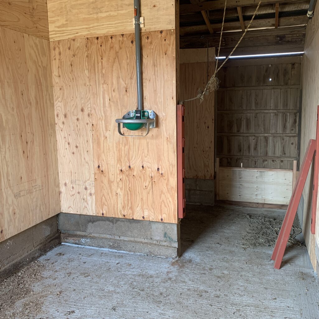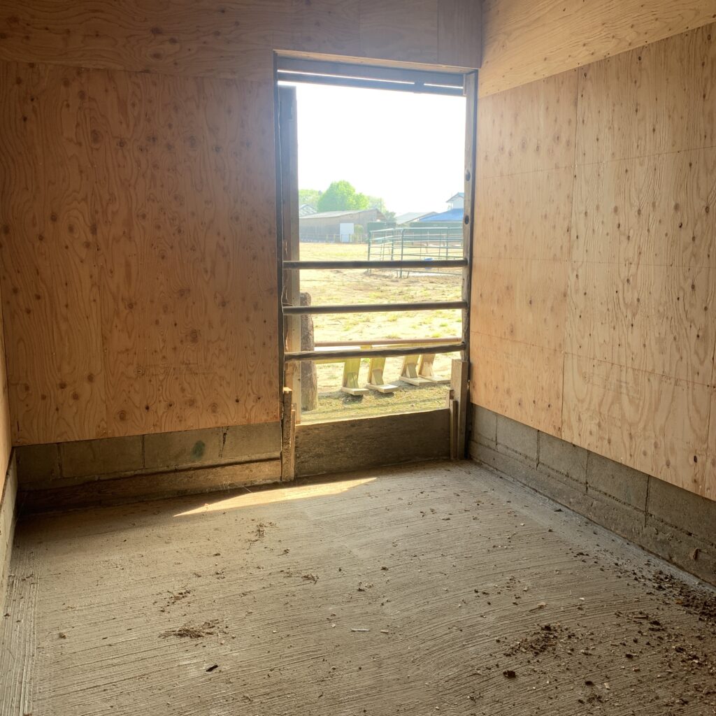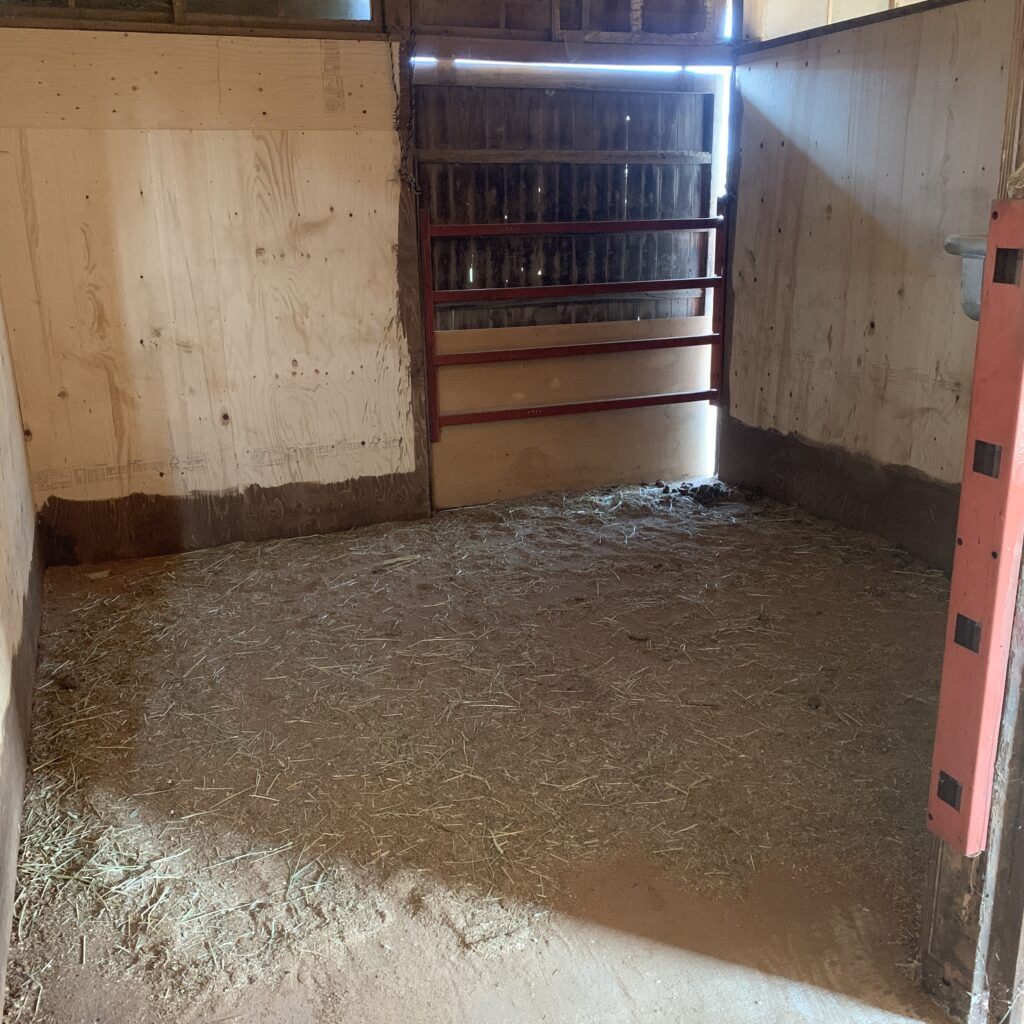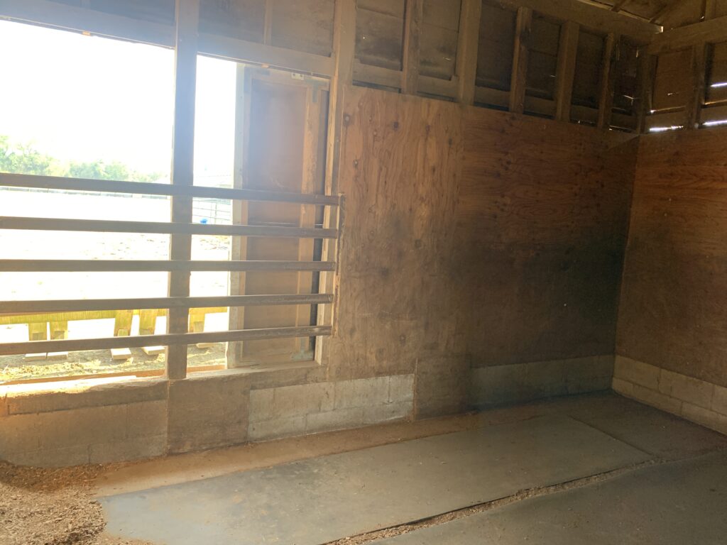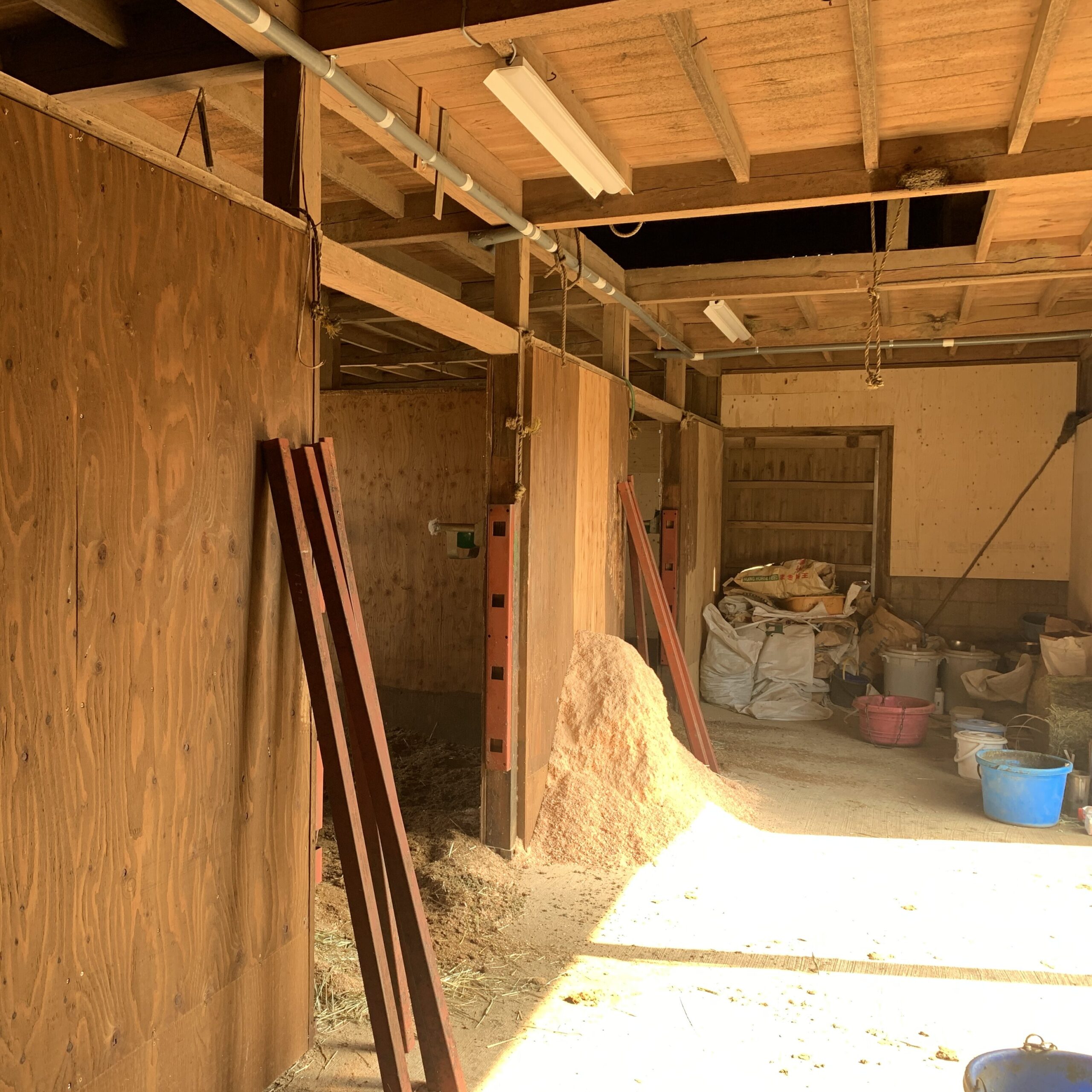 約7帖の馬房です。馬房から直接外にも出られる窓があり、引き戸を開けると明るく風通しがとても良いです。