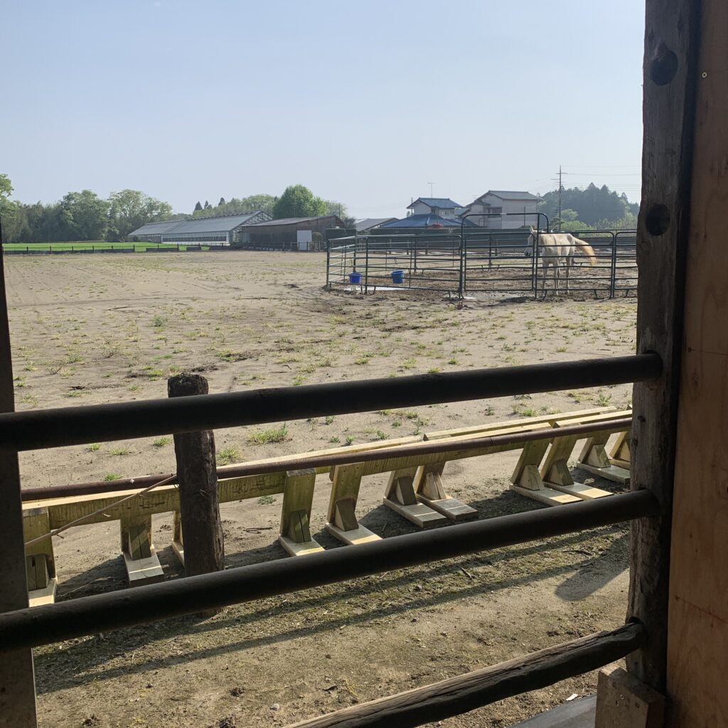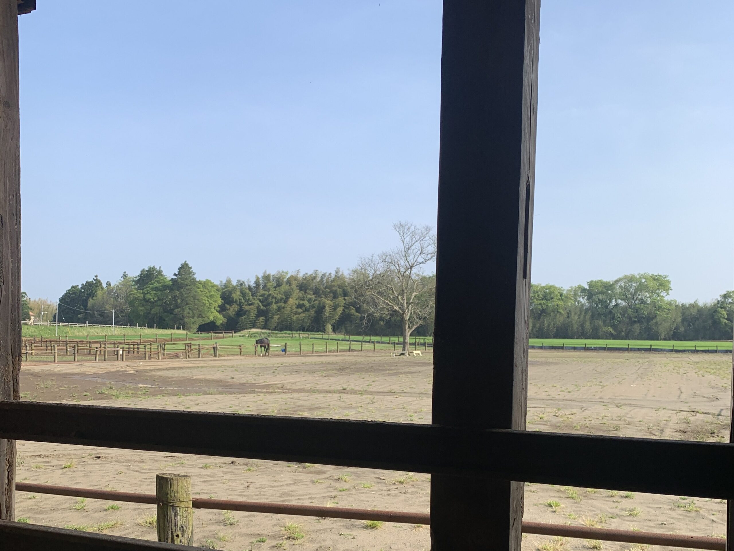馬場に面した厩舎になります。大きな窓から美しい景色が眺められますので、厩舎にいながらも解放感を感じられます。